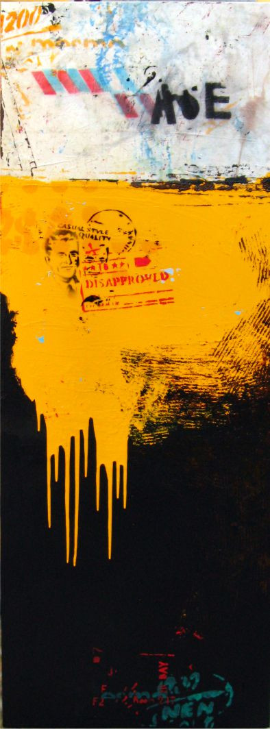 Acrilic paint, latex emulsion, spray and collage on canvas