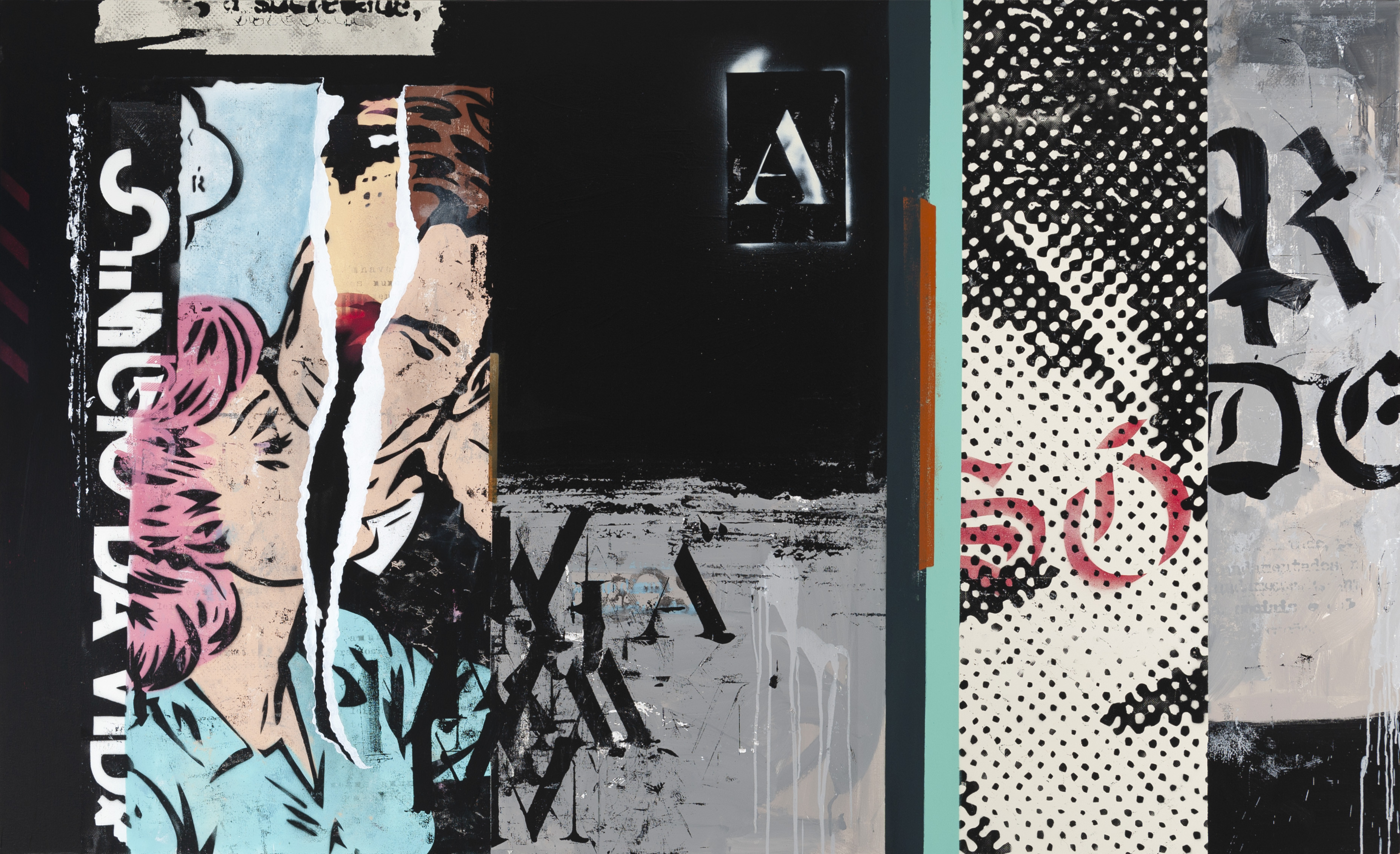 Acrilic paint, latex emulsion and spray on canvas